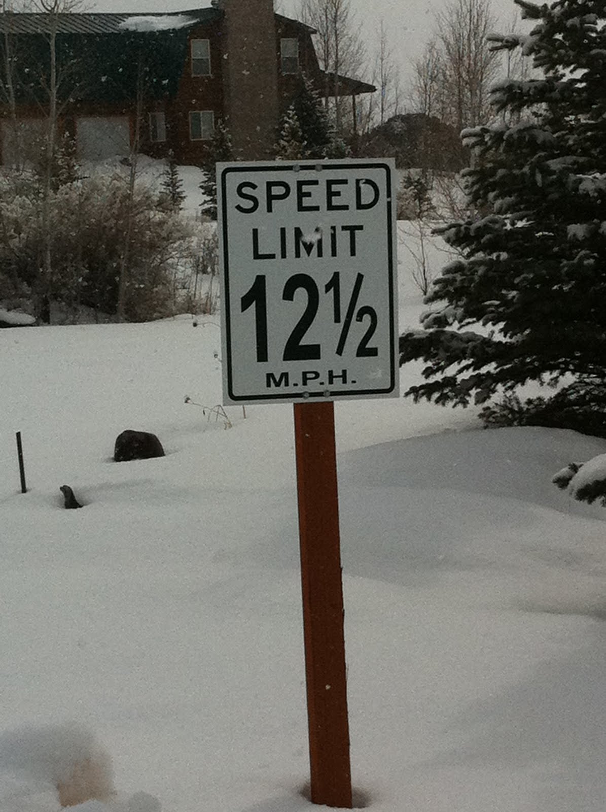 The local speed limit sign on the town's busiest freeway. Which in fact is a one-way dirt road.